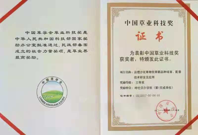 与呼伦贝尔市农业综合开发部门合作开展沙地治理牧草新品种培育、及配套技术研发及应用,在呼伦贝尔沙地治理中进行大面积推广,取得良好生态效益和经济效益。此成果获“中国草业科技奖三等奖”,实现了永利yl23411集团官网自然科学省部级奖零的突破。