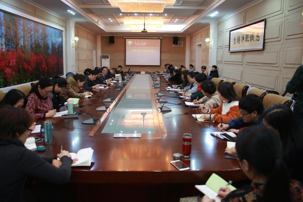 下午,在图书馆三楼报告厅,洪成文教授与部分二级学院主管科研副院长及教师座谈,座谈会由科技处处长敖特根主持。