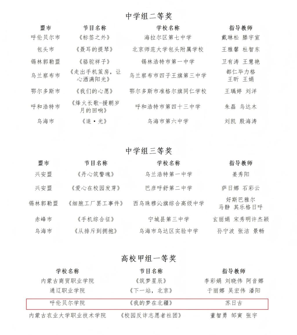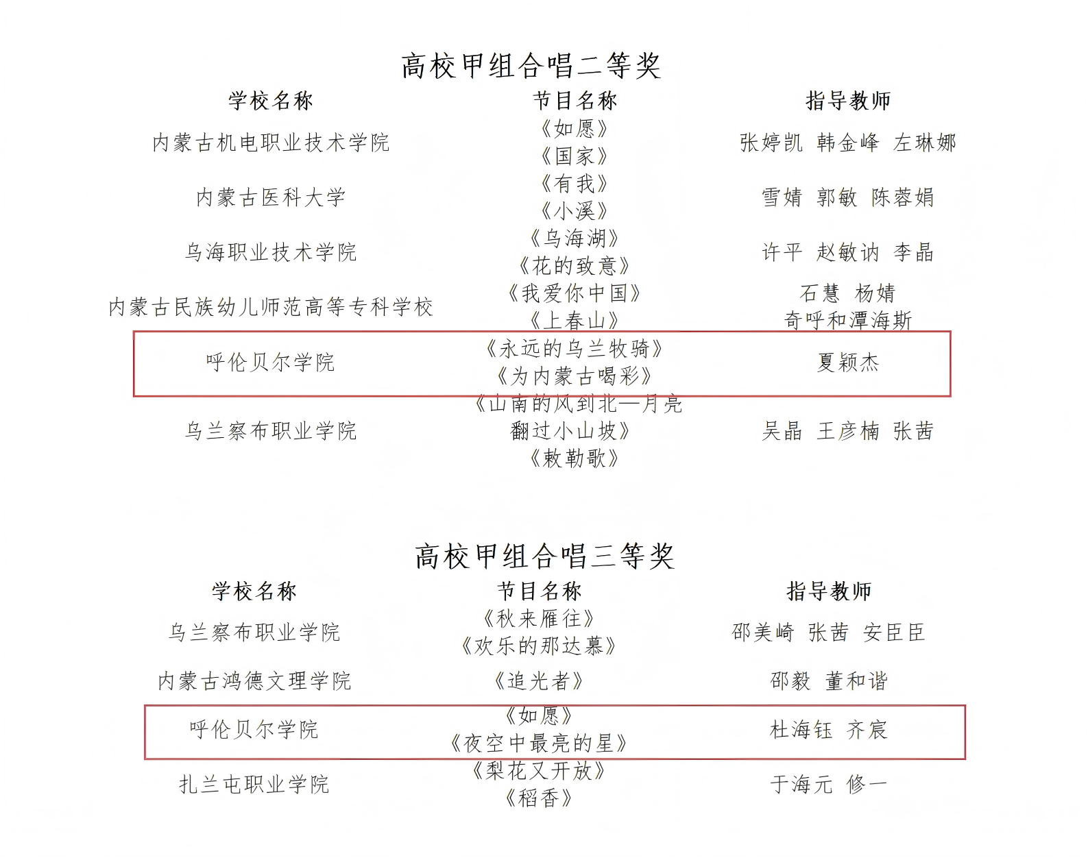 本次展演由内蒙古自治区教育厅主办,以“绽放艺术风采 激发强国力量”为主题,吸引了全区多所大中小学的优质作品同台竞技,竞争激烈。永利yl23411集团官网学子凭借扎实的艺术功底、精湛的表演技艺与真挚的情感表达,交出了亮眼答卷:合唱作品《永远的乌兰牧骑》《为内蒙古喝彩》荣获高校甲组合唱二等奖、《如愿》《夜空中最亮的星》荣获高校甲组合唱三等奖;戏剧作品《我的梦在北疆》荣获高校甲组一等奖、《钢铁意志》荣获高校甲组二等奖,《我的梦在北疆》还荣获高校甲组最佳导演奖、优秀创作奖。