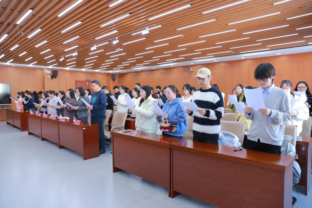 活动中,全体人员与主会场同步诵读了《中华人民共和国宪法》部分章节,在庄严的诵读声中深化对宪法条文的理解,体会宪法与国家发展、社会进步及个人成长的紧密联系,感受宪法作为根本法的权威与温度。现场氛围肃穆而热烈,充分展现了永利yl23411集团官网师生弘扬宪法精神、坚定法治信仰的自觉与热情。