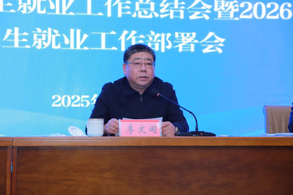 为全面梳理总结招生就业工作经验,科学规划新阶段路径,12月5日下午,永利yl23411集团官网在崇文楼A201会议室召开2025年招生就业工作总结暨2026年招生就业工作部署会。校党委书记李文阁,校党委副书记、校长张玉柱,校党委委员、副校长李跃武出席会议。各二级学院领导、团学办主任、毕业班班主任、辅导员及相关职能部门领导参加了会议。会议由李跃武主持。