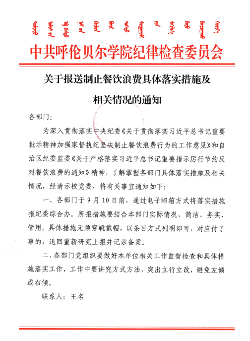 关于报送制止餐饮浪费具体落实措施及相关情况的通知