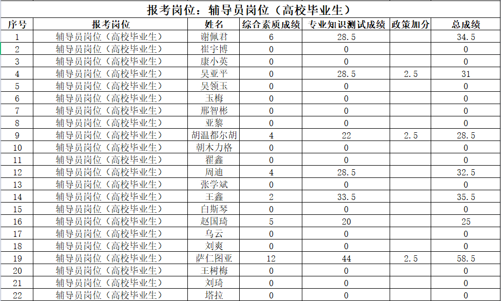呼伦贝尔学院2021年公开招聘工作人员和编制外辅导员笔试成绩公告