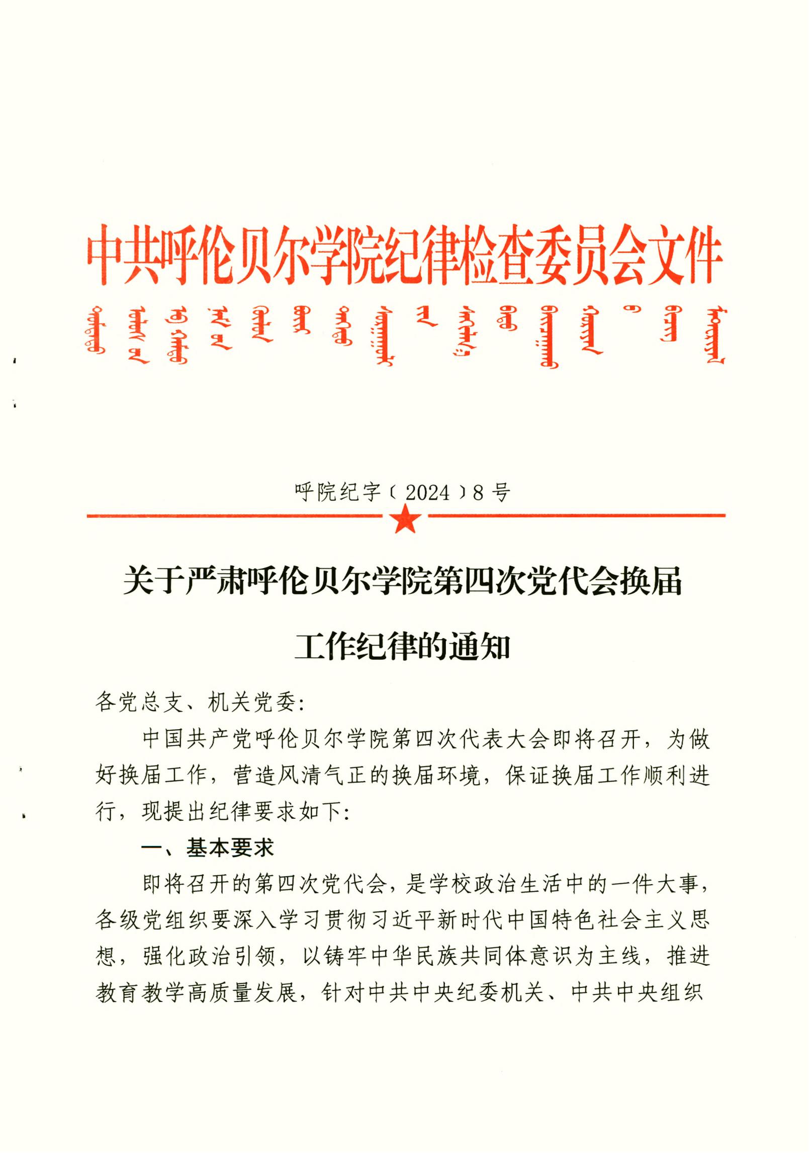 关于严肃呼伦贝尔学院第四次党代会换届工作纪律的通知