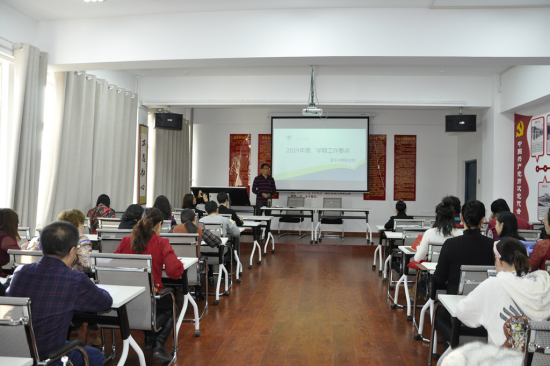 姜明程院长对本年度及本学期的教学、科研、人事及特色工作进行了梳理、要点解读和工作部署;强调在教学工作中要以审核评估整改工作、师范专业认证工作、2019级人才培养方案修订等工作为主线,强化教育教学提升课堂教学质量;在科研工作中要将申硕及科研项目的申请作为主要工作,加强与本地区行业合作,提高我院的科研工作能力和科研工作积极性;在人事工作中加强高学历人才的引进工作,完成本年度的岗位聘任、强化考勤、完善人事档案信息化建设;在我院的特色工作中,继续加强环节干部队伍建设,开展第五届教师业务汇报工作。姜明程院长向全体教职工传达了《呼伦贝尔学院师德师风负面清单及师德失范行为处理办法》,结合音舞学院实际逐条进行解读,对2018年度考核评优工作进行工作安排。