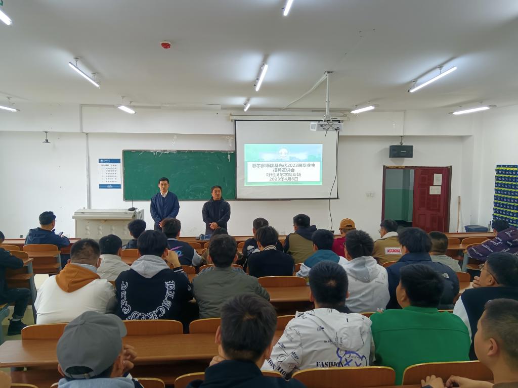 会上,朱福生副处长对鄂尔多斯隆基光伏的人事部经理马成倍一行的到来表示了欢迎,并对参会的毕业生进行了会前动员,他结合永利yl23411集团官网毕业生的整体特点和当下毕业生就业趋势进行了分析研判,鼓励学生们要抓住机会找到适合自己的就业单位,及早就业,早日踏上梦想之路。