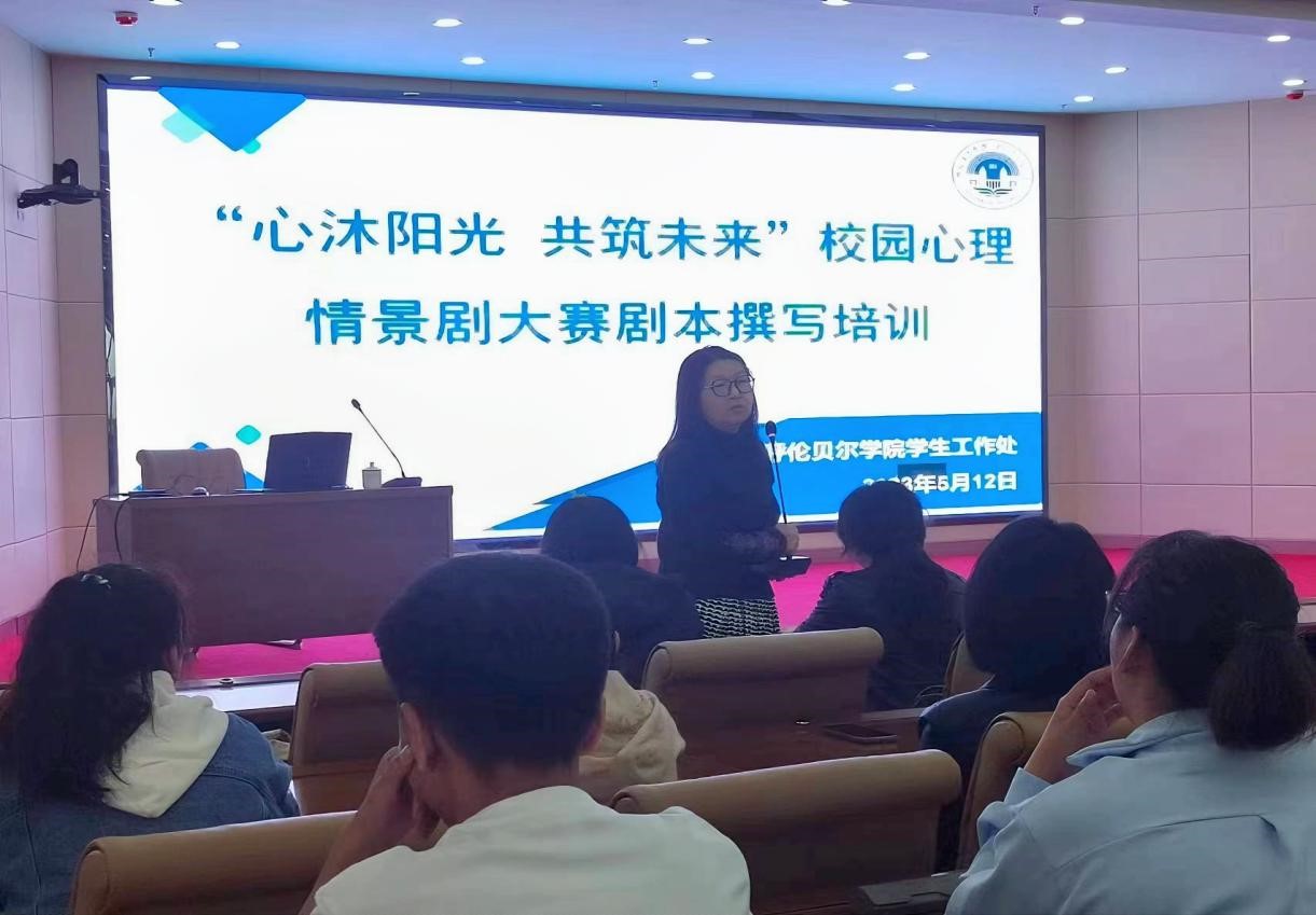 赛前,学生工作处于5月12日举办了“心沐阳光 共筑未来”剧本撰写培训,文学院苏日古老师对心理剧本撰写等内容进行了详细讲解和指导,学生工作处副处长谢春辉老师进行了总结并对参赛选手提出了要求,一是希望大家凝聚集体的智慧和力量,珍惜活动过程的学习和体验,有所收获、有所提升;二是要认真消化培训内容,尊重剧本撰写的专业性,注重心理情景剧的特殊性,高质量完成剧本撰写;三是校园心理情景剧的撰写和表演是很好的心理察觉、调整的过程,希望大家通过此次活动提高心理品质、丰富内心世界、培育美好情感,达到完善人格的目的。