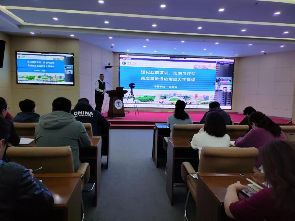吴国玺从发展战略谋划与规划的编制、大学发展理念与规划的设计、大学发展规划的监督与执行、“十四五”规划中期评估与反思四个方面,深刻阐释了发展规划在学校战略管理中的重要作用,强调了规划实施过程中的资源保障与配置、项目库管理等问题,并以许昌学院发展规划中期评估为例,进行了深入细致的分析与讲解。