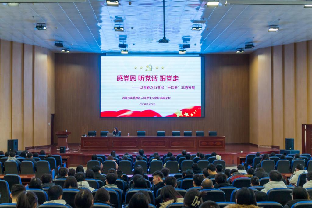 为进一步做好学校“十四冬”志愿者工作,团结带领志愿者在服务“十四冬”中成长成才,上好“十四冬”这堂“大思政课”,校团委分别于1月22日、24日组织在校800余名志愿者开展“感党恩、听党话、跟党走”主题团课,永利yl23411集团官网冰壶馆带队教师、马克思主义学院教师杨萨茹拉主讲。