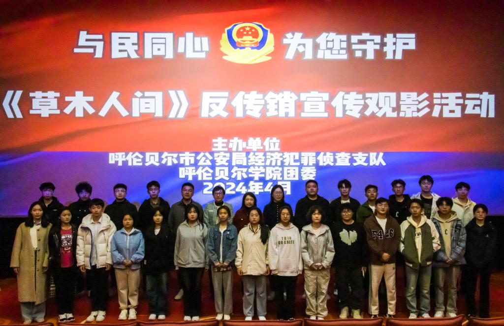 4月23日,在第15个‘5·15’全国公安机关打击和防范经济犯罪宣传日到来之际,团委与呼伦贝尔市公安局经侦支队共同举行中国首部反传销电影《草木人间》主题观影活动。活动由青年民辅警、老干部、社区警格员、平安义警以及永利yl23411集团官网32名师生共同参加。