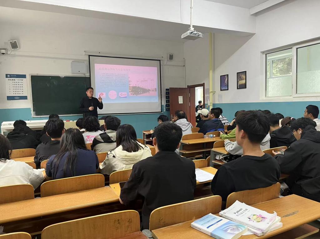 山东南山国际飞行有限公司派遣了经验丰富的市场招生部负责人前来永利yl23411集团官网,向同学们详细介绍了公司的培训规模、成就以及针对此次招聘的培养方式和发展规划。宣讲会现场气氛热烈,此次还特别设置了互动环节,学生们现场提问、交流心得,负责人也耐心解答,与大家分享经验。这种面对面的方式让学生们更加直观地感受到了企业的文化氛围。