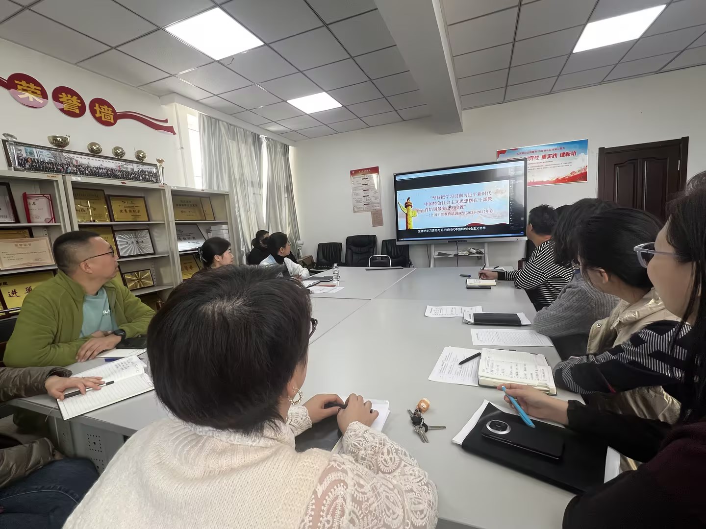 会上,第二党支部书记张迪带领大家集中学习了“三多三少三慢”问题的二十二条措施,加深了党员对工作作风建设重要性的理解,引导党员在日常教务工作中提高效率、优化服务,坚决避免不良工作作风。统战委员张春辉领学了《呼伦贝尔学院企业微信使用管理规定》,探讨如何借助企业微信平台提升沟通效率并加强意识形态工作,确保信息传播的正确与安全。随后,第一党支部书记张铁军带领大家学习了《呼伦贝尔学院学术不端行为调查处理实施细则》,明确了学术诚信的底线和红线。并在学习后组织观看了《加快发展新质生产力,以科技创新推动数字经济高质量发展》视频讲座。
