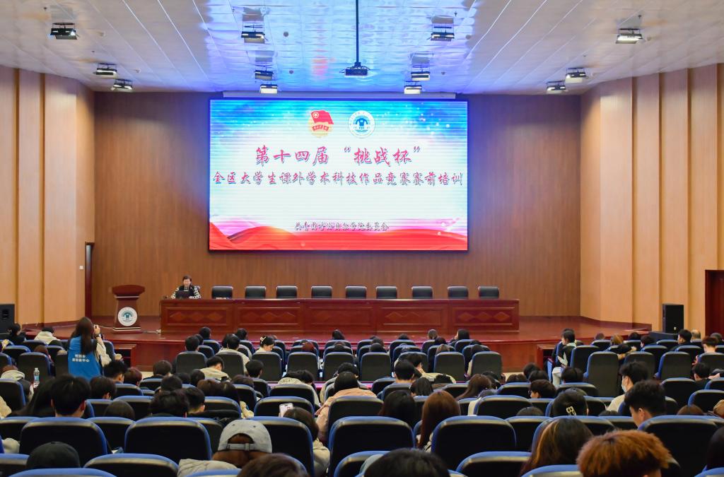 为积极响应国家培养创新型人才的号召,提高永利yl23411集团官网师生“挑战杯”大学生课外学术科技作品竞赛参赛水平,增强参赛团队竞争力,有效推动永利yl23411集团官网第十四届“挑战杯”全区大学生课外学术科技作品竞赛工作有序开展,4月1日,永利yl23411集团官网第十四届“挑战杯”全区大学生课外学术科技作品竞赛赛前培训会第二期在图书馆四楼报告厅举办,各学院师生350余人现场聆听了讲座,讲座由校团委书记王晓芳主持。