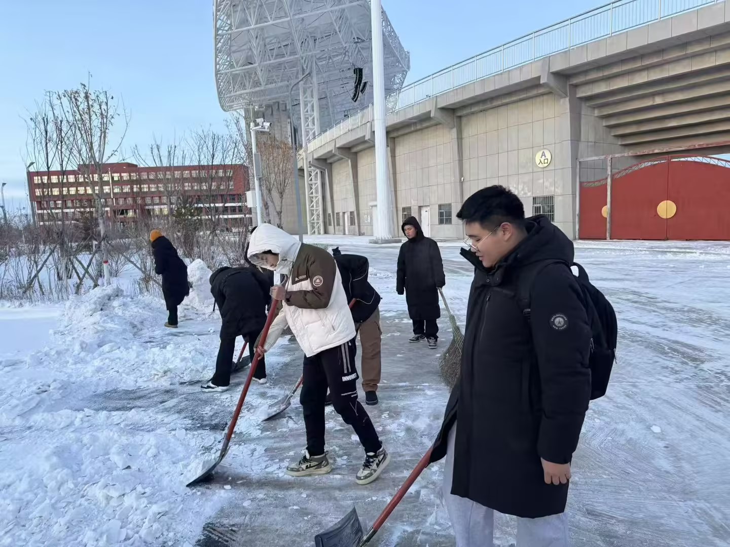 此次集中清理行动中,各二级学院领导率先垂范,带领师生志愿者重点对教学楼走廊、实验室角落、宿舍楼道、校园绿化带等区域的卫生死角、堆积杂物展开全面清扫整治。针对室外积雪,师生们手持铲雪板、大扫帚等工具,分工协作、干劲十足,将道路与绿化带的积雪彻底清理、规范聚堆,全力保障校园通行安全,让整洁畅通的环境成为冬日校园里的一道亮眼风景。